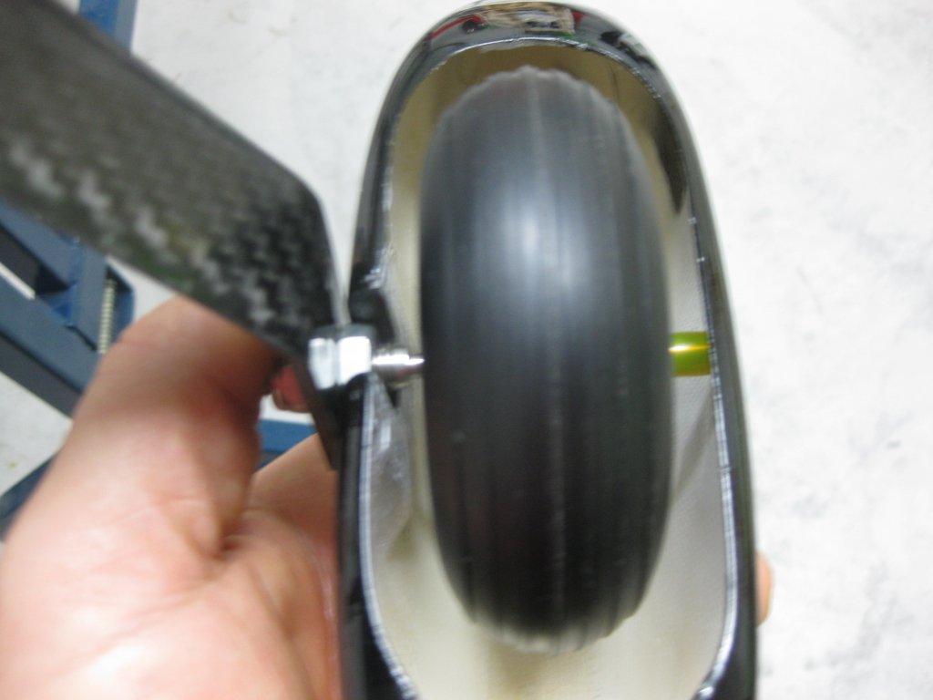 Justerte hjulstoppere så hjulet ble i senter på hjulkåpene. Monterte samtidig på en fuelslange på hjulakselen. dette gjør at hjulet aldri vil falle av selv om hjulstopper skulle løsne. Samtidig litt vibrasjons-demper på hjulkåpen.