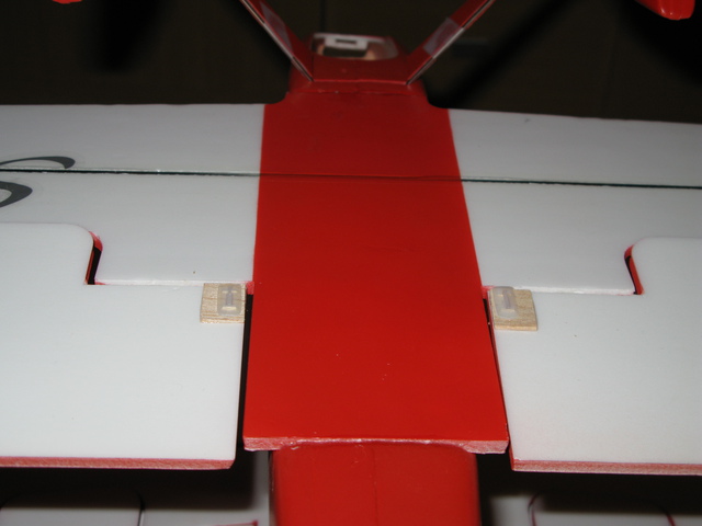 Limte inn en tynn balsabit på undersiden av hvert ror og limte fast rorhornet gjennom balsabiten.