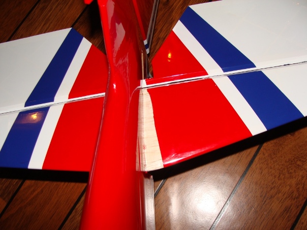 Det for å måle avstand mellom stab og vinge på begge sider. Den bør være lik.