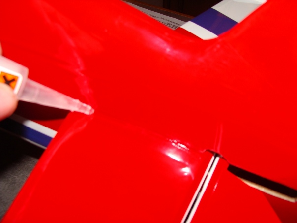 Her syns jeg det var tryggest å bruke epoxy ettesom jeg har dårlig erfaring med CA på rorhorn.