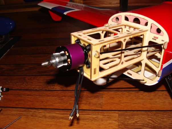 Motoren skrus fast i klomuttere i kroppen med skruer som følger med. Enkelt og greit.