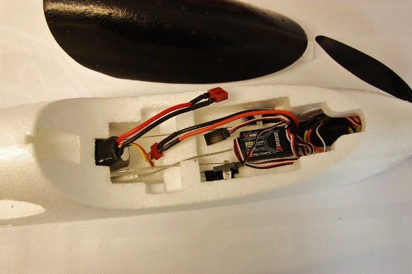 Når det gjelder plasseringen av batteriet klarte jeg, selv med mine mange modeller og år innen denne hobbyen, å plassere dette feil.. Men rett plass til batteriet er selvfølgelig at det skal tres inn mot vingerøret i flyet.