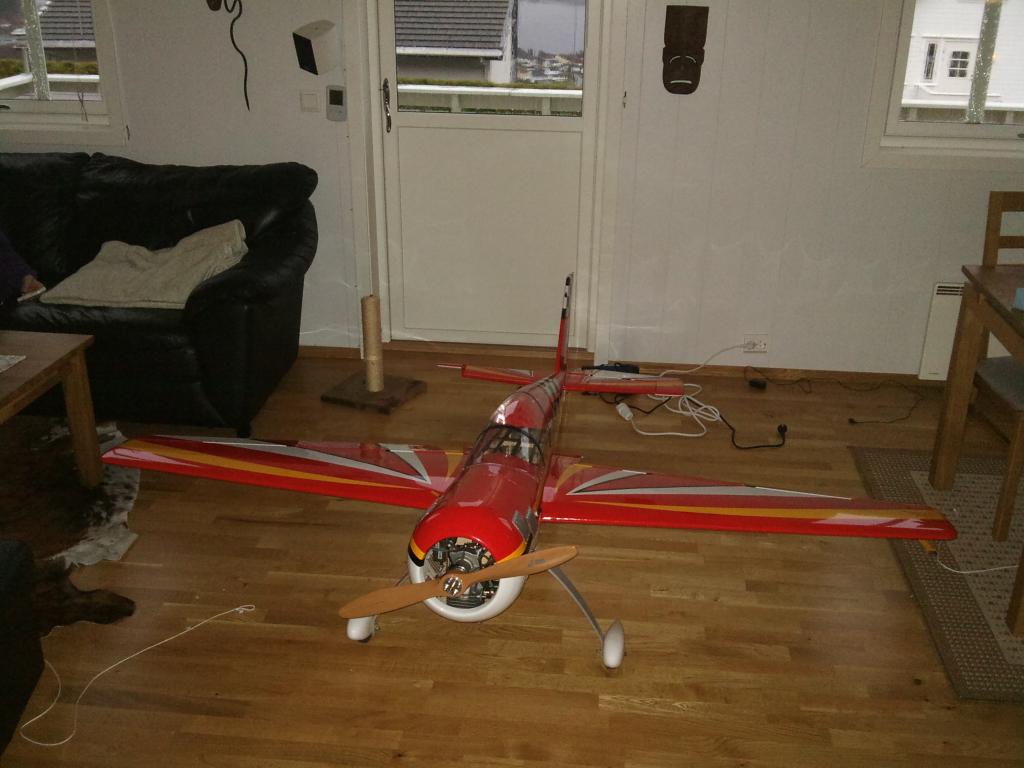 jaja, da er modellen ferdig, desverre så stoppa ikke vekta før det stod 8.8kg, dette er uten bensin, men fullt batteri syntes dette ble litt væl mye for en 2.24m med dle55,har bygd modellen så lett som overhodet mulig, kanskje den må på slankekur etterhvert, skal uansett prøve den med denne motoren, å evt få tak i en bittelitt større motor om det viser seg å være for lite (noe jeg er ganske sikker på det kommer til å bli). legger ved noen bilder........