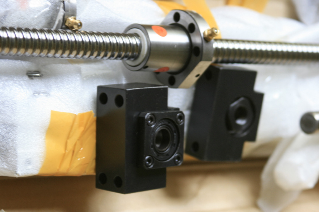 -Jeg skal maskinere endene på skruene selv, men har aldri vært borti dette systemet med oppspenning før. Antar at den smale blokken bare vil fungere som støtte, mens oppspenningen vil skje i den tykke blokken ved at jeg dreier ned skruen slik at den får en diameter lik innerdiameteren på lagrene som er glatt, og lager en bit med gjenger i enden for strammemutteren slik at mutteren trekker den ubehandlede skruen mot lageret fra den andre siden??? -Og bør stepmotoren sitte i denne enden eller i den andre "frie" enden????