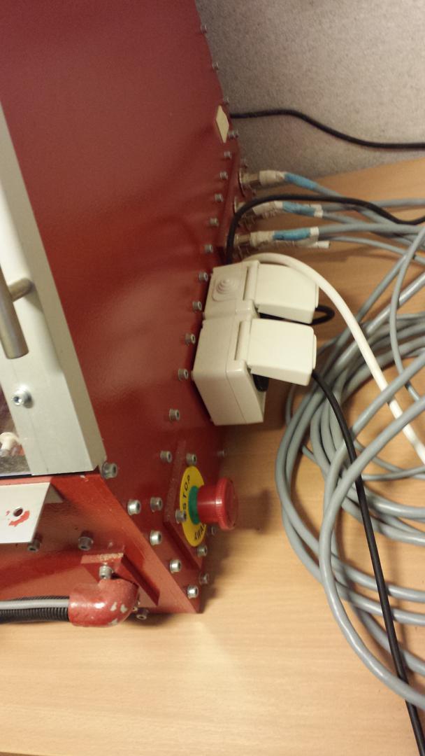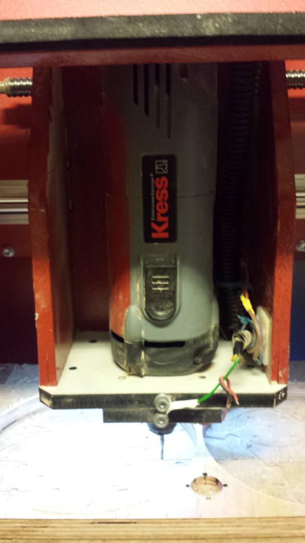 - Dobbel kontakt. En med konstant strøm på og en via rele for å slå av og på fresmotor via software.