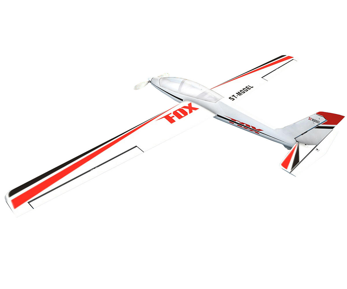 S-T Fox RTF 180cm vingespenn. Motorseiler med balanseror, flyet er laget i ett isopormateriale som tåler ekstra mye og leveres ferdig med elektronikk montert. Modellen er utstyrt med børsteløst motorsystem og li-po batteri. Flyet er enkelt å montere og leveres komplett bortsett fra 8AA batterier til radioen.