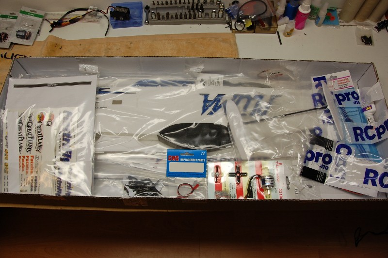 En ting som jeg syntes er veldig kjekt med GP sine indoor modeller er at de kommer mer eller mindre ferdig ut av esken. Alle ror er ferdig hengslet og kroppen kommer ferdig ut av esken.