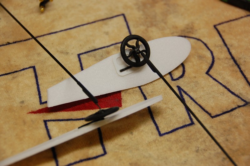 Først er det vingene som skal monteres på kroppen, dette er en enkel prosess som innebærer å bare lime de til kroppen samt lime inn støttene ute ved vingenetippene. Når det er gjort må man lime sammen de støtstengene som holder de øvre og nedre bal.rorene sammen. Det er 2 stk pr. side og så limes disse på plass, bare husk å sette på de dingsene som holder rorene rette.