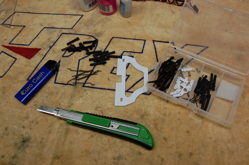 • A whole PILE of control horns, clevises, link horns and push rod supports