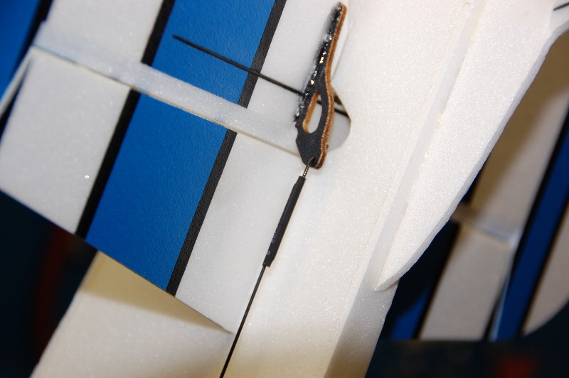 - Deretter ser man alle de små detaljene i monteringen som allerede er gjort. Sån som f.eks at de har limt inn en liten carbonpinne i halen for å beskytte den under landinger, eller at alle ror (unntatt sideroret) er flott hengslet og sitter perfekt montert.