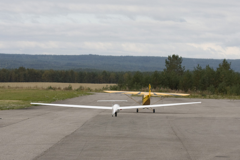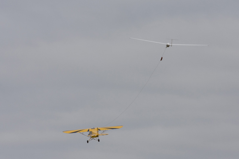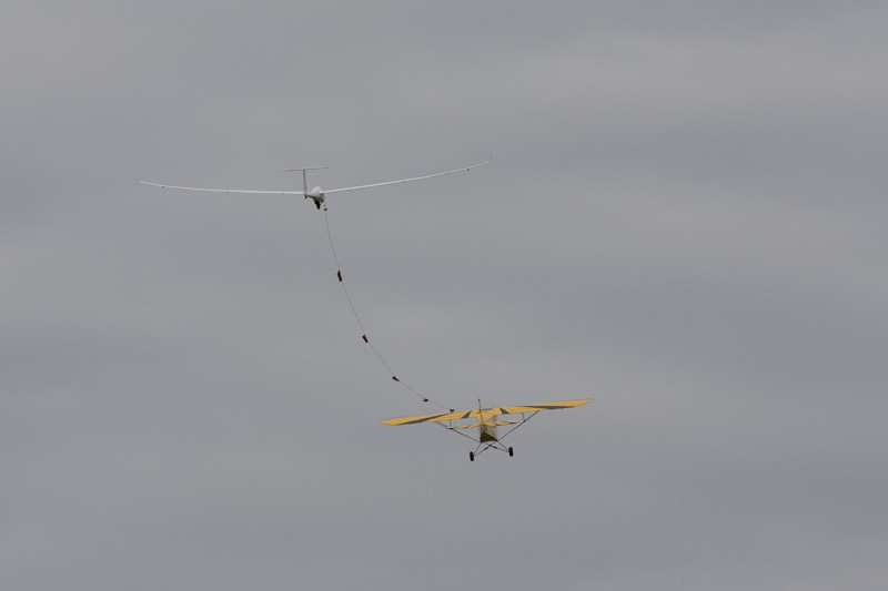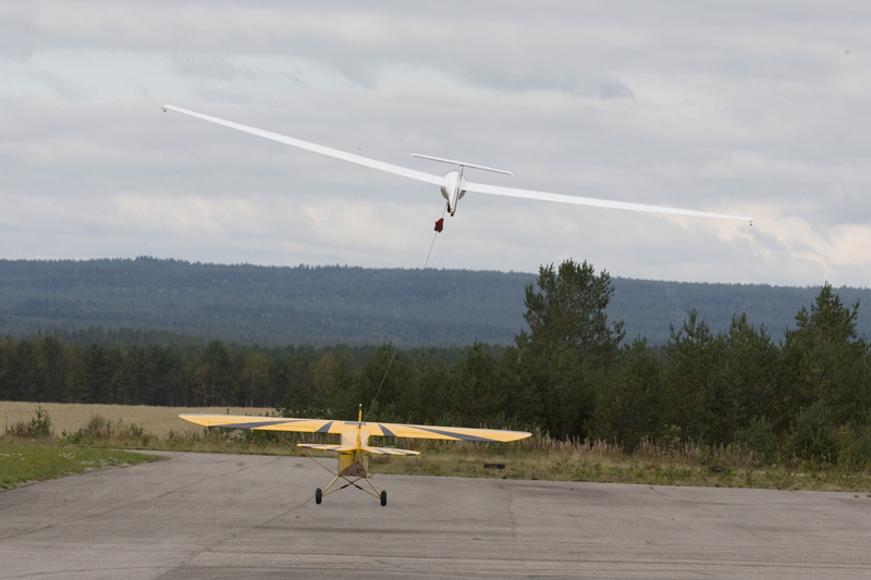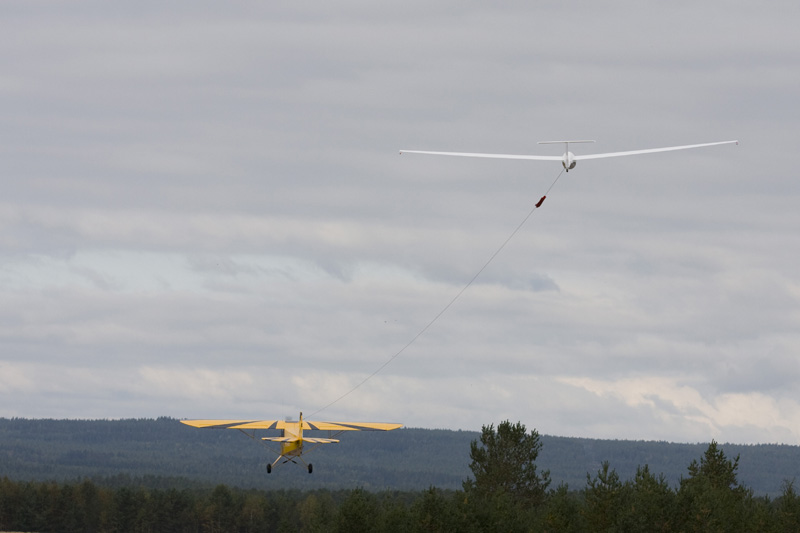 Etter å ha brukt opp to av flyets liv var det dags for mer sleping, og på et av slepene slepte jeg til 986 meter. Da begynte seilflypiloten å slite med å se sitt fly, men jeg kunne nok ha gått til 1500-1600 meter uten problem.