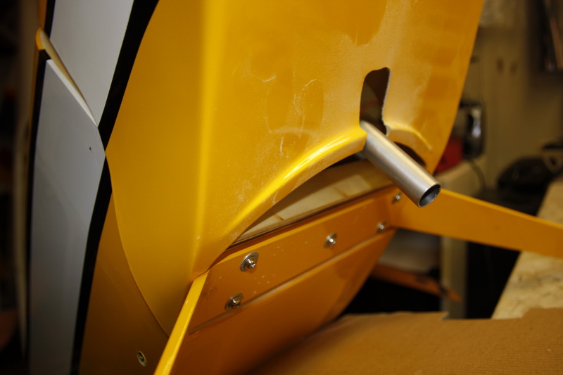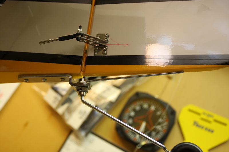 Da er høyderorene bestykket med rorhorn og kun å justere linkens lengde før alt er klart. halehjulsbraketten er skrudd fast, dog i noe tynt gods der bak. Det burde vært noe hardtre inni men det er det ikke. Kjører på så får vi se om det holder, alternativt på det en liten operasjon i duken for å få inn litt mer treverk inni der.