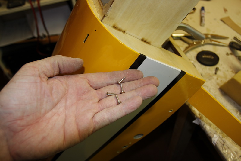 Samme opplegg som alt annet på høyderoret, men roret er bare 11mm tykt og skruene 22mm. Er litt usikker på om jeg skal forbore og skru de inn til de nesten er gjennom for så å skru de ut, herde med CA og deretter klippe de i riktig lengde ELLER
