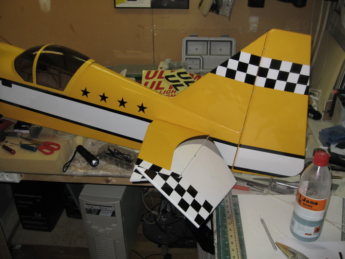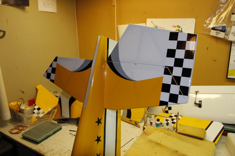 I tillegg er staben akkurat limt på plass med 30 min epoxy. Skal få stå og herde til i morgen så kommer finnen og siste høyderor samt sideror på plass.