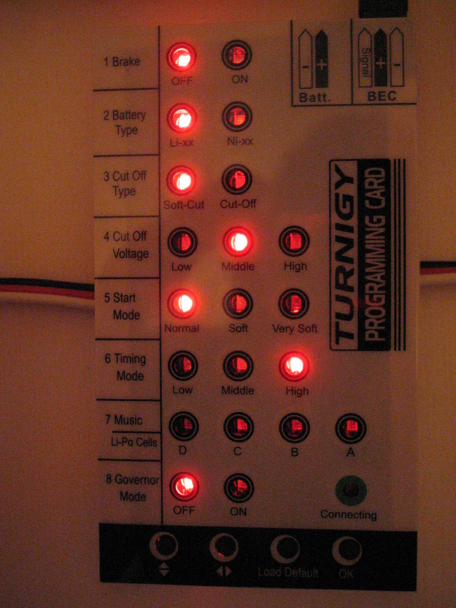 Kveldens siste økt bestod i å lodde bullet kontakter og deans på ESC'en og noen batterier samt programmere ESC'en med programmeringskortet. Fanzy greier