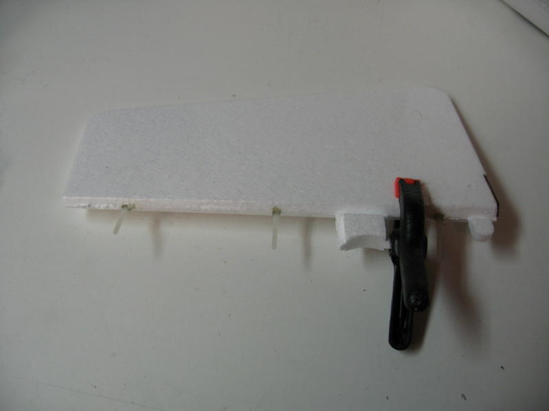 Sideroret var jeg også litt spent på. spesielt de to epp pluggene som skulle inn i noe som så ut til å være alt for små hull. Men de gikk forbløffende lett inn. Siden jeg selvsagt tok litt for mye lim på den ene pinnehengsla så sitter jeg nå å vrir sideroret til høyre og venstre slik at hengsla ikke skal lime seg fast