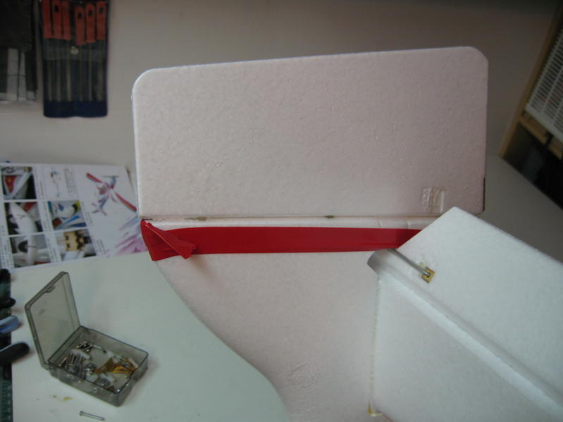 Manualen som følger med er fra en tidlig produksjon og prefabrikeringen er kommet mye lenger enn hva manualen tilsier. Kropp, motorboks, canopy etc er gjort klart. Starter med selve halen hvor jeg limer inn pinnehengsler på sideroret.