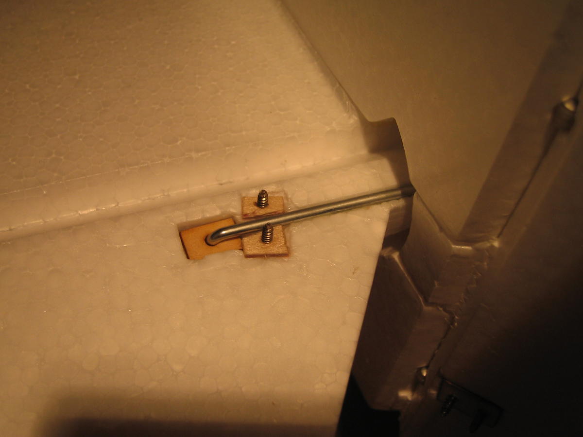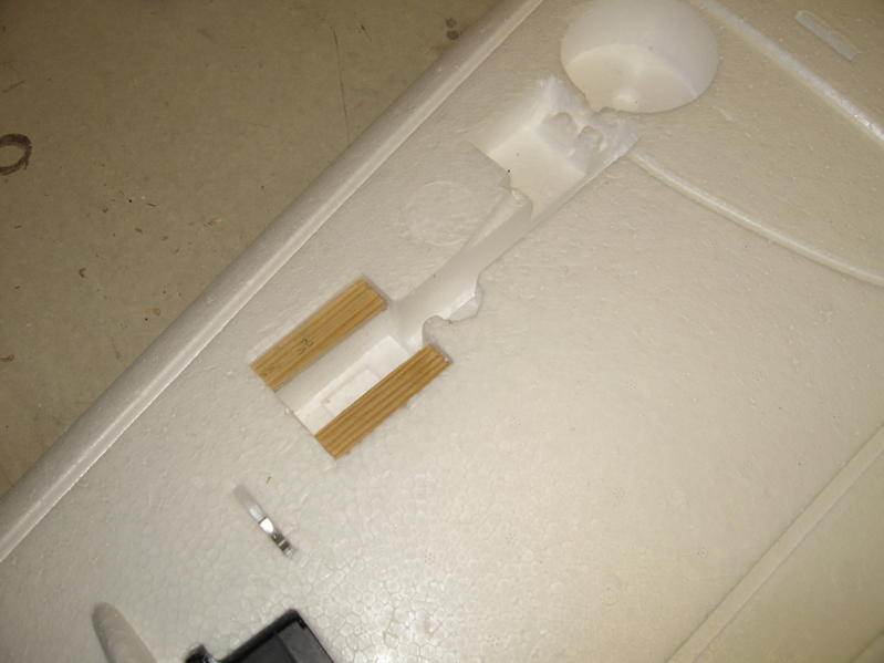 Retractmonteringen var egentlig grei. Jeg limte inn noen striper på ca 9x40 mm lengde og tykkelse på 3mm unde retracten slik at jeg kunne skru det opptrekkbare ned i disse. Flaten under ble rettet med cutter og pusset med litt grovt sandpapir før jeg limte med epoxy. I tillegg la jeg litt kontaktlim på siden av retract som setter seg mot selve brønnen for disse. Det har fungert rimelig bra på det lille jeg har fått flydd.