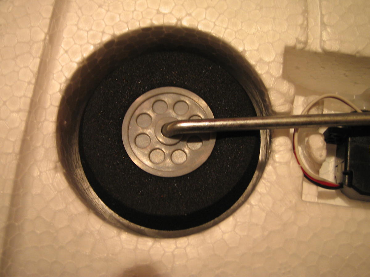 Har tittet litt på det opptrekkbare understellet og har ikke helt de samme observasjonene som affa. Diametern på hjulbrønnen på mitt sett gir god klaring til hjulene, så her slipper jeg å kutte. Diameter på selve opptrekket er minde enn standard understell. Dette betyr at stopp-ringen er litt for stor, men antar den holder seg på plass så lenge setskruen er festet godt.