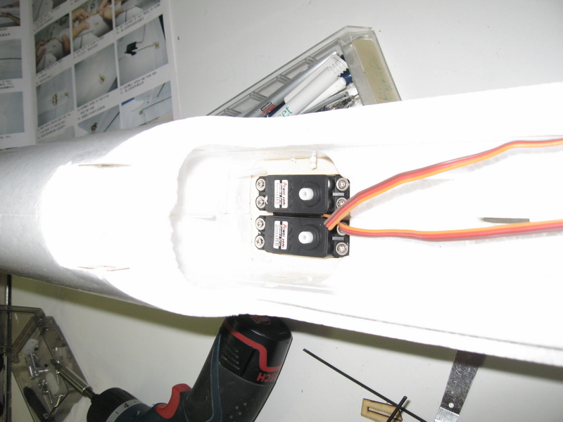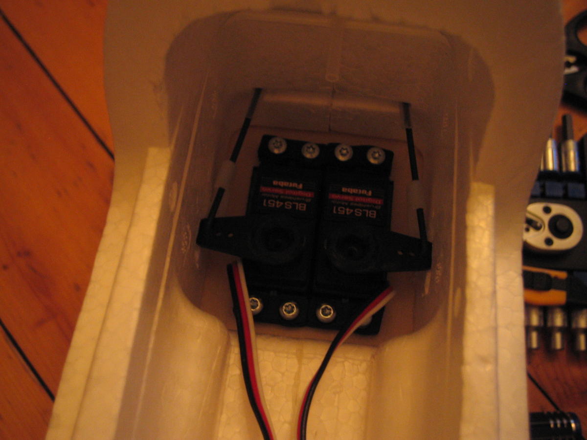 Når det gjelder servo-ledningen så sier affa at han tapet disse på plass. Jeg har ikke noe tape i farta som biter på epp så jeg kommer nok til å legge en dråpe med lim på strategiske plasser for å holde ledningen på plass.