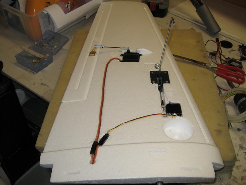 Ellers så vet jeg ikke om jeg ville fjernet noe av kroppen for å få større utslag, dette er en pattern trainer og den trenger ikke store utslag for å fly det den skal? Mine utslag er mer enn nok til vanlig og jeg klemte servoledningen mellom servoen og brukte ett servohorn som passet uten å gå borti kroppen.