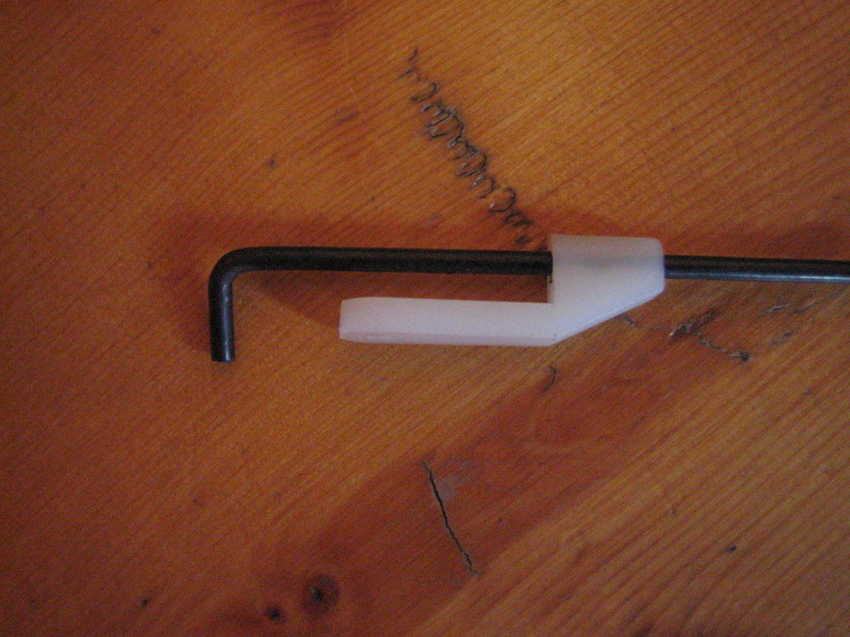 Jeg synest det er litt vel stor bøy på pianotråden ved montering på høyderor, men det fungerer vel sikkert helt greit