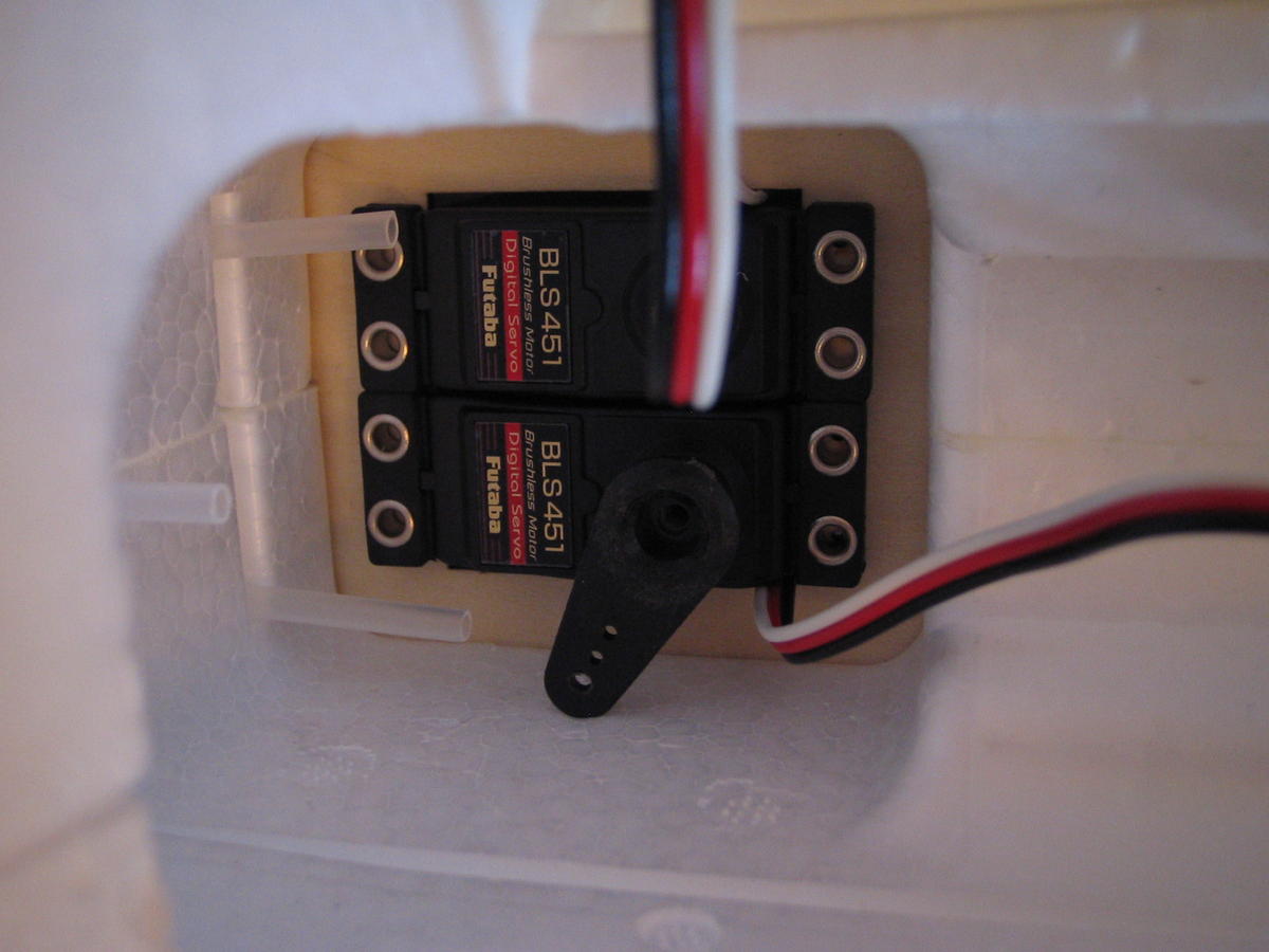 Ang. servoene så er det i mitt tilfelle snakk om et par Futaba S3156MG som jeg hadde liggende. Disse drar mellom 2 og 2,4kg og har metall drev så jeg tror de holder til formålet så lenge jeg får festet dem skikkelig