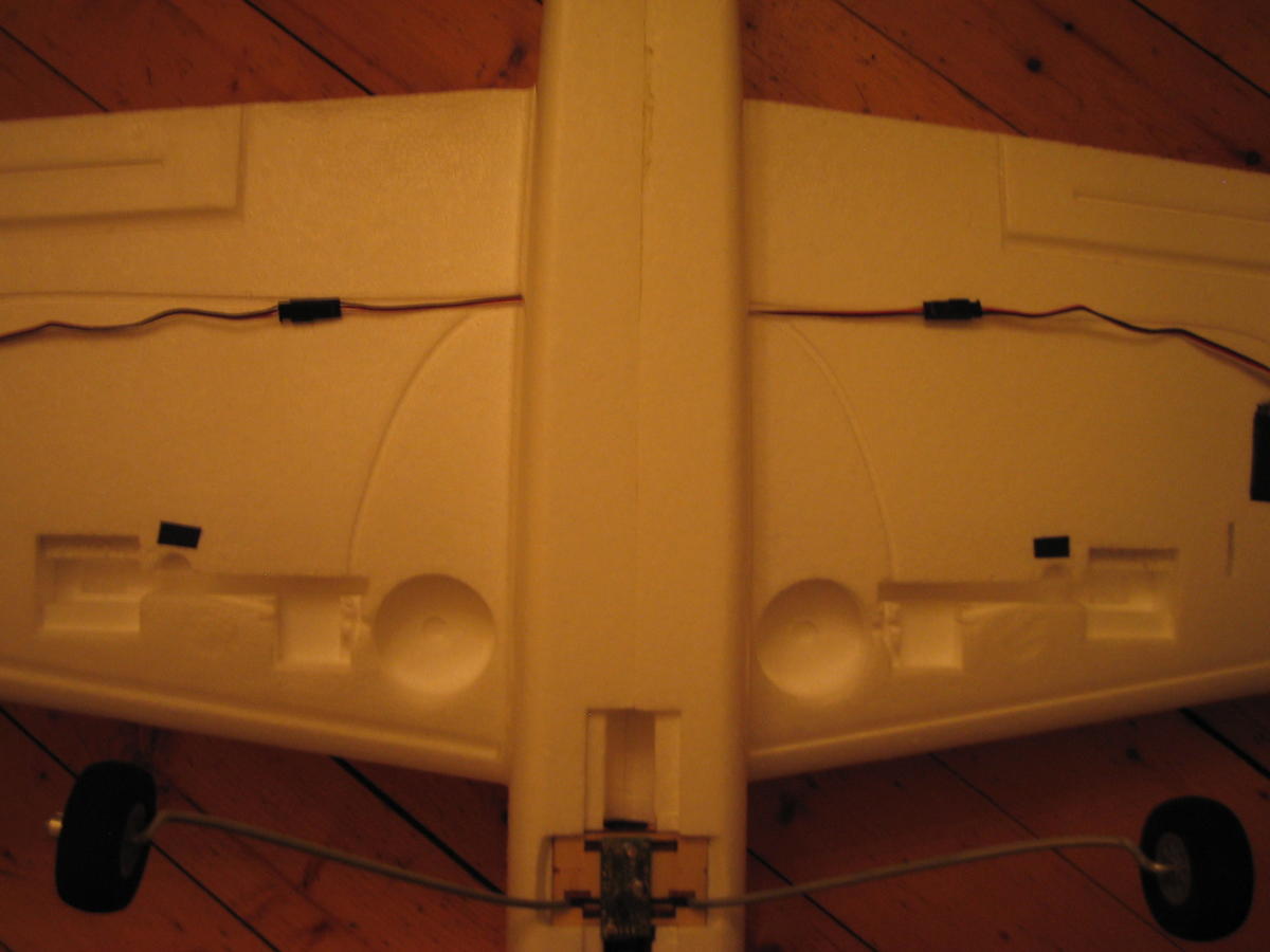 Under vingen la jeg servokabelen så pent jeg kunne og tapet den fast med tynn, bred og blank tape.