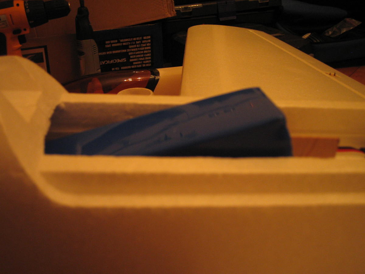 Side og høyderorsservoene settes ned i kroppen og skrus fast. Litt vanskelig å skru de bakerste skruene om du ikke har en liten stjerne kubbetrekker, men jeg brukte en lang tynn stjernetrekker som jeg trykket gjennom isoporen bak under canopyfeste og fikk skrudd alle fire skruene derfra.