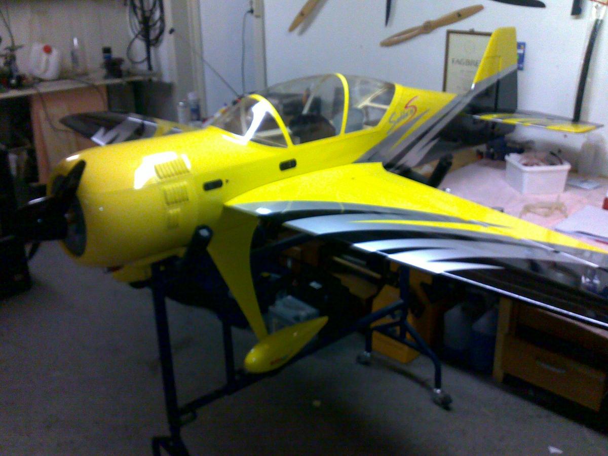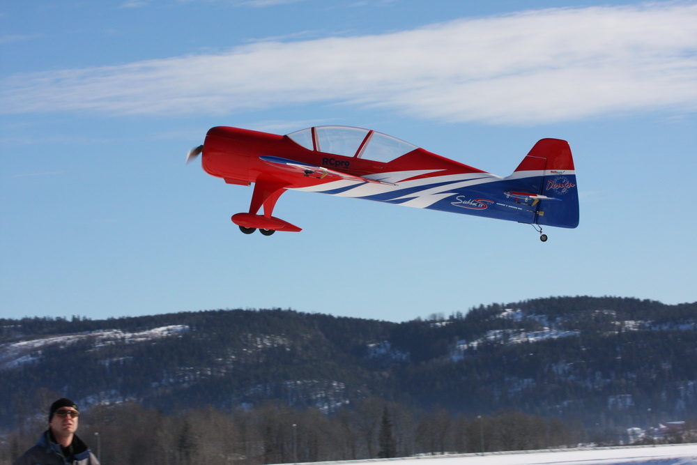 Jeg hadde sjekket utslag på øyemål og den var innenfor CG range og siden været var knall hadde jeg ikke tid til å sjekke at ror gikk like langt etc så dette skal nå justeres i løpet av de kommende dagene. På augemål så det rimelig bra ut.