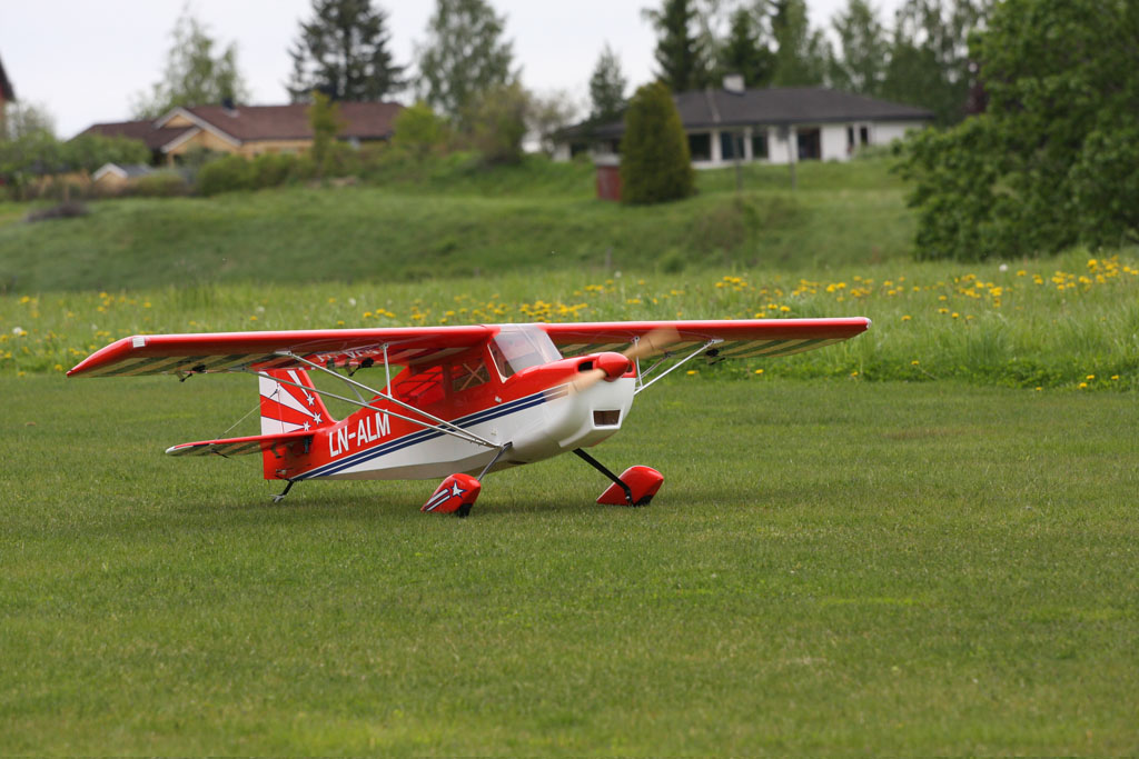 Greit med krefter, tilsvarer en 70-80cc bensinmotor tenker jeg. Har timeren på 9 minutter, da har jeg brukt ca 3000mAh. Lader med PL8 på ca 13-14 minutter. Planlegger for neste år ett sett til med batterier, og slepekrok for seilflyslep.