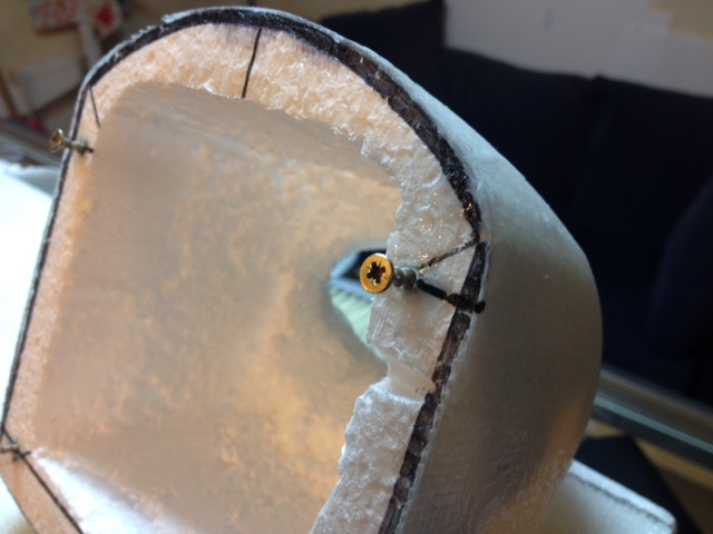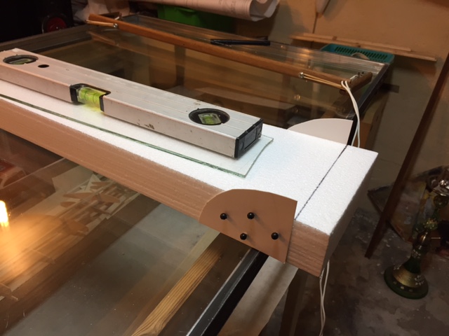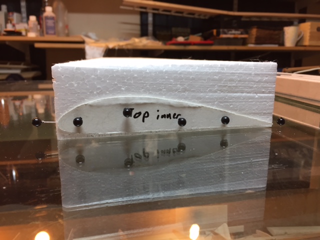 Tenkte først å måle forkanten like høyt på ytre og indre, men det ville gitt skeiv vinge.