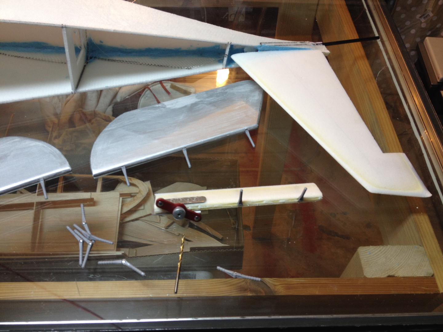 Annet eksempel på hengsling (Bi-Fly 25) Her er flate hengsler brukt, og støttet opp med balsa for å få hengslelinjen nok inn i roret