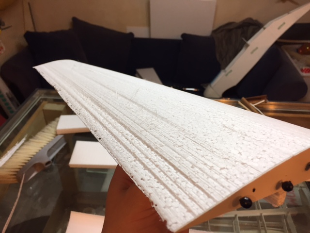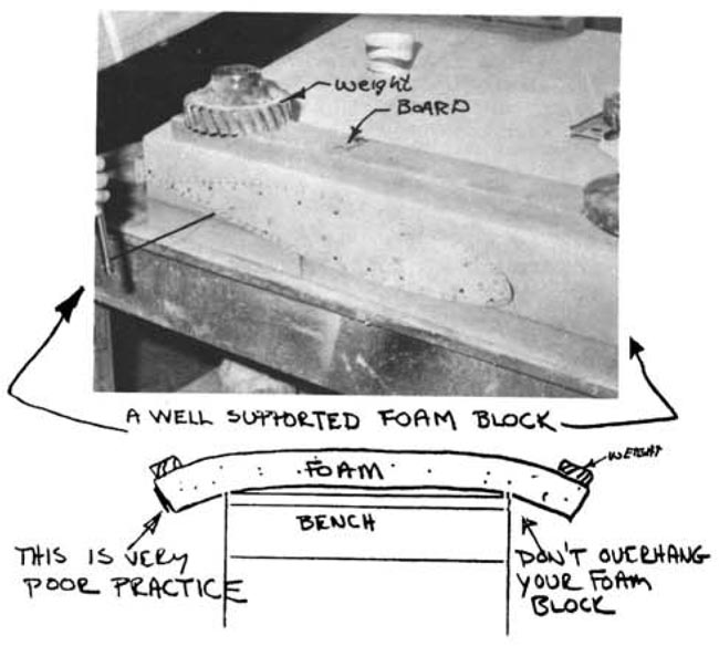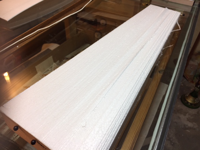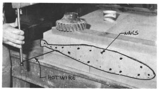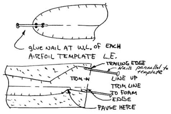 "Don’t be overly concerned if you don’t make perfect foam cuts: ridges on the foam core from inadvertently lifting the hot wire off the templates are easily faired in with a sanding block. A less-than-perfect leading edge can be blended in by sanding after the foam core is assembled. Gouges in the foam can be smoothed and filled with dry micro to contour after applying the glass skins. The foam is too expensive to throw away because of a minor gouge."