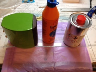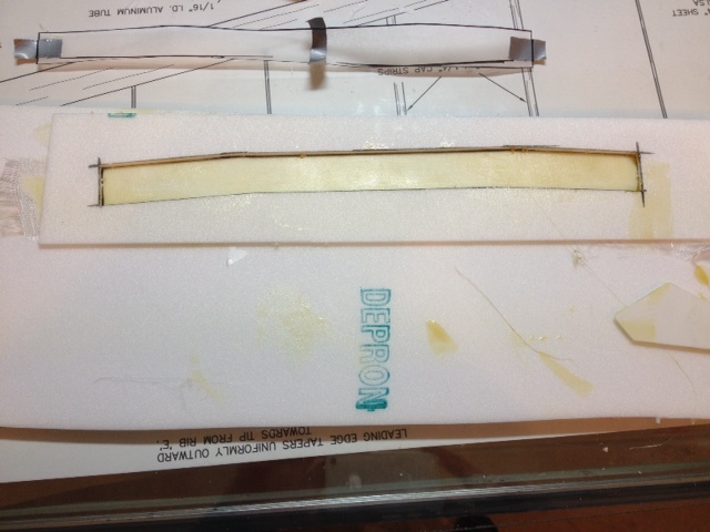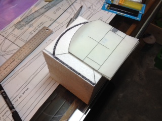 Overført avstiver til matpapir, kopiert over på depron underlag og 3 mm depron utskjæring som blir støpeform.