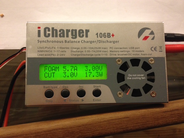 Icharger'n står på 3.0 Volt og det gir oppmot 6 ampere.