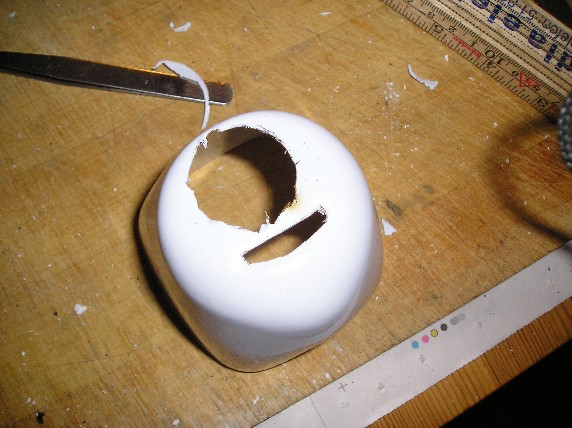Etter hvert som flyet tok form, begynte småarbeidet. Cowlingen ble skjært ut, ikke verdens beste jobb akkurat. (Bilde: E-starter for