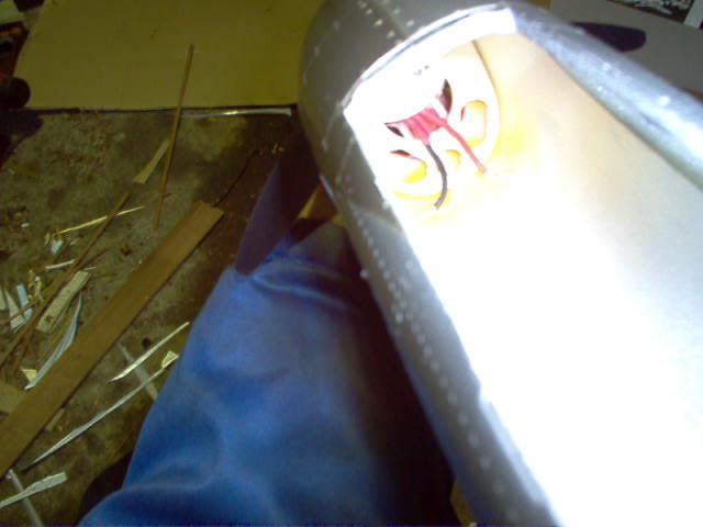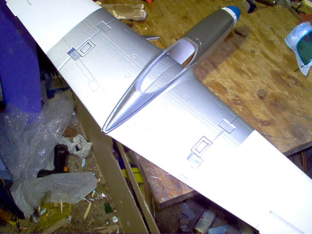 har nå limt sammen vinge halvdelene, tredd innpå midt partiet. og klippet ut og satt på de vakumformede plast dingsene som skal dekke over skjøten. er ikke noe flink med saks/kniv på sånt små arbeide så jeg vet ikke hvor pent jeg får det. men skal nå gjøre mitt beste. Hvis det ser skeivt ut på bildet så kan jeg berolige med at det er ikke limt enda