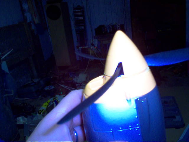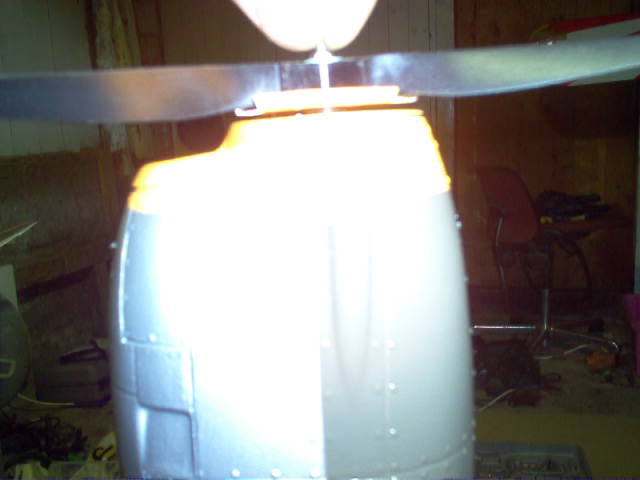 6.spinneren limes fast til bakplaten slik at man helt sikkert ikke skal ha mulighet til å skifte propell