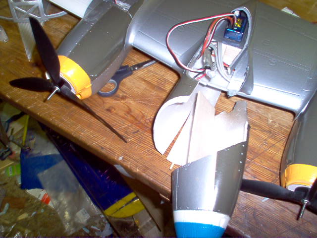 nå gir jeg oppservoene var for høye slik at jeg ikke får på lokket som skal over. og hvis jeg senker dem langt nok ned så blir de stikkende ut på undersiden av vingen. er de hs55 servoene så mye mindre en disse towerpro servoene da. må nå prøve å finne en løsning på det. gidder ikke kjøpe enda flere mini servoer