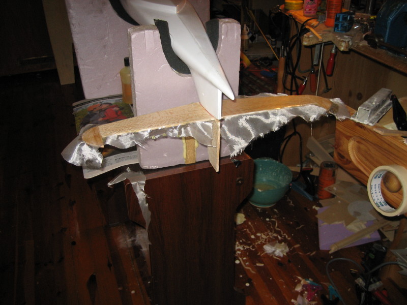 Liming av stab valgte jeg å gjøre opp ned, fordi jeg da hadde god kontroll på vinkler, og det var lett å legge på nødvendig press. Her kan man også se at jeg har begynt på å glasse vingen.