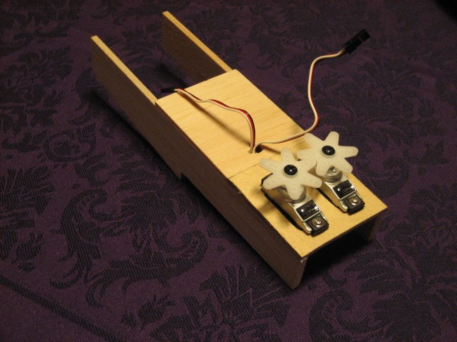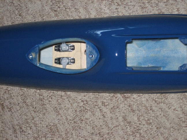 Servoer er anskaffet, og servobrett til kroppen er bygget og montert. Holder på med servomontasjen i vingene, men det er litt mer jobb, siden de må monteres liggende i vingen og jeg ikke har så lyst til å lime dem.