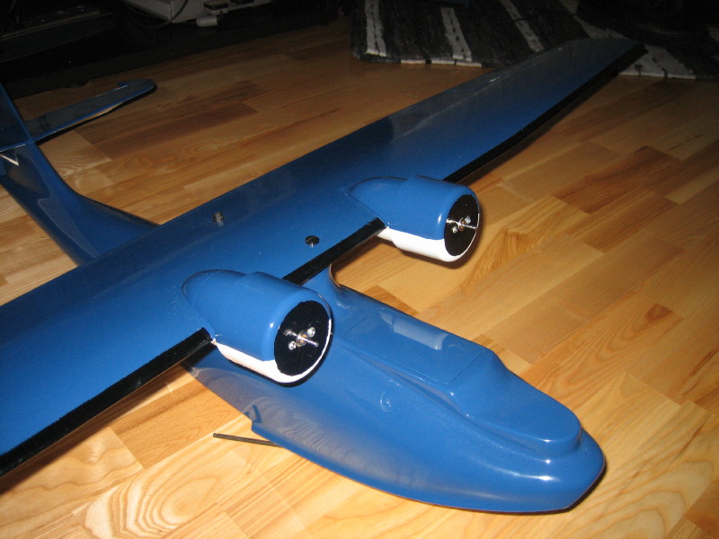 Nedenfor ligger noen bilder av hvordan det ser ut i dag. Vingen er lakkert, og der gjenstår kun de mattsorte forkantene (ice boots), og dekaler. Flyet blir lakket i et norsk etterkrigs fargeskjema, med mørk blå overside, hvit underside og norske rondeller (som jeg enda ikke har kjøpt). Dette er egentlig en Catalinaversjon som vi ikke har hatt i Norge, men det bryr jeg meg ikke så hardt om Blandt annet er sideroret forskjellig