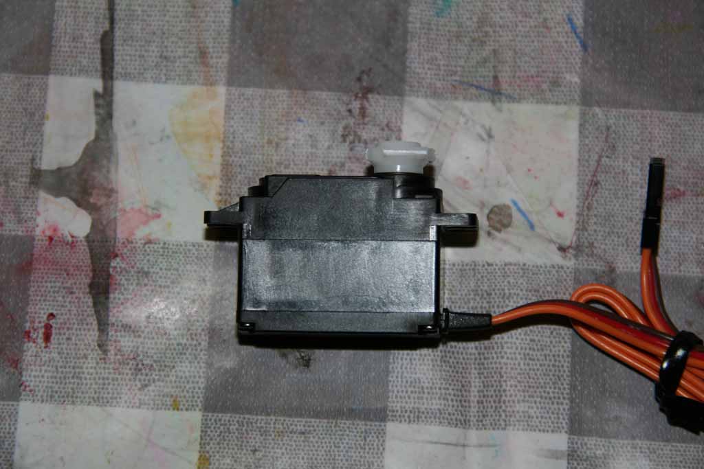 Også fremme på haleservoen, måtte det litt tukling til for å få fullt utslag, hornet tok i servofestet, men det var bare å skjære litt av det med en modellkniv.