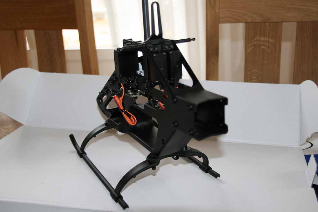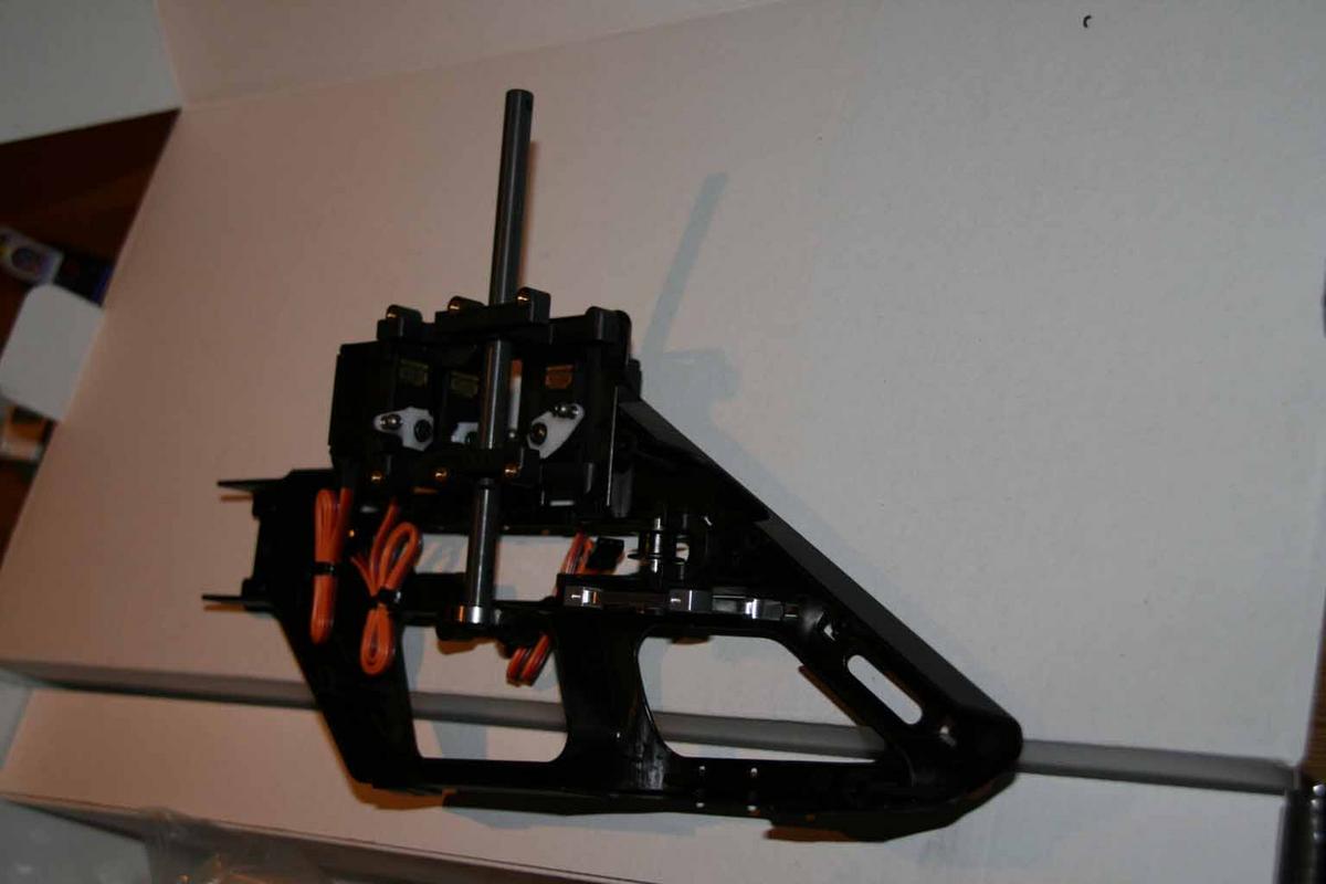 Det var litt "dilling" for å få de 3 hovedlagrene på linje, men ved å holde alle servoene løse, og skru sammen ramma med alle skruene, bortsett fra de nederste på servoramma, stikke masta igjennom, og kjenne hvor den var løs, så gikk det greit.