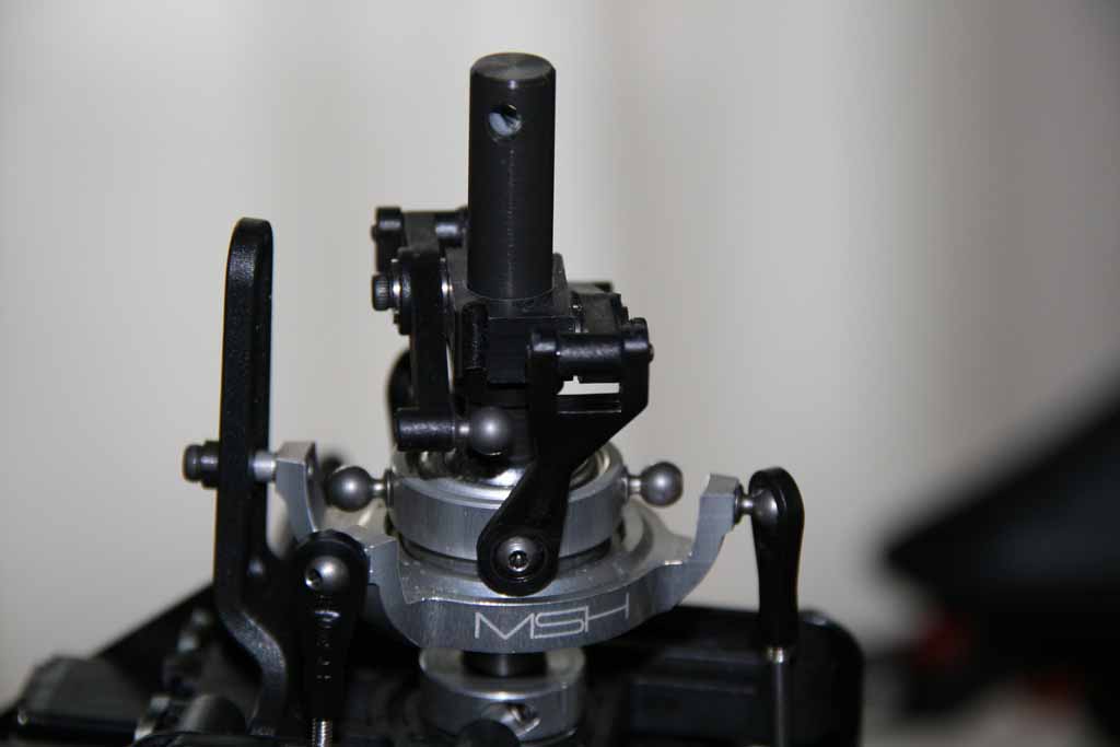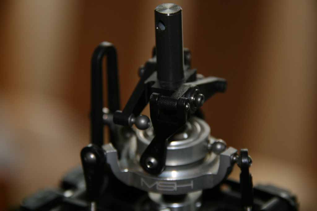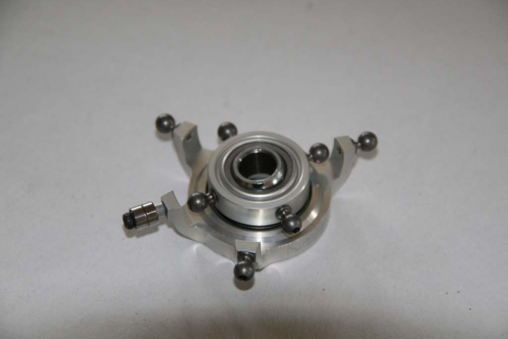 Legg merke til at swashen har to kulelager mot antirotasjonsbraketten. Forøvrig de minste kulelagrene jeg har sett.