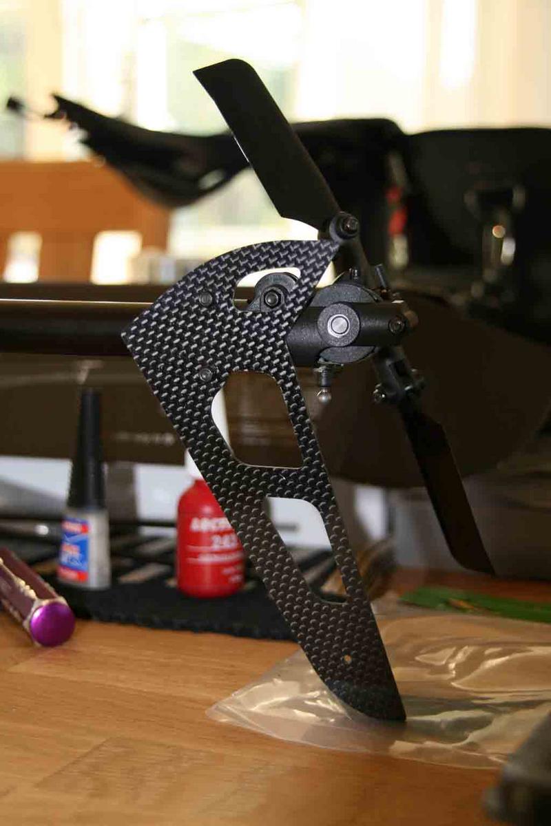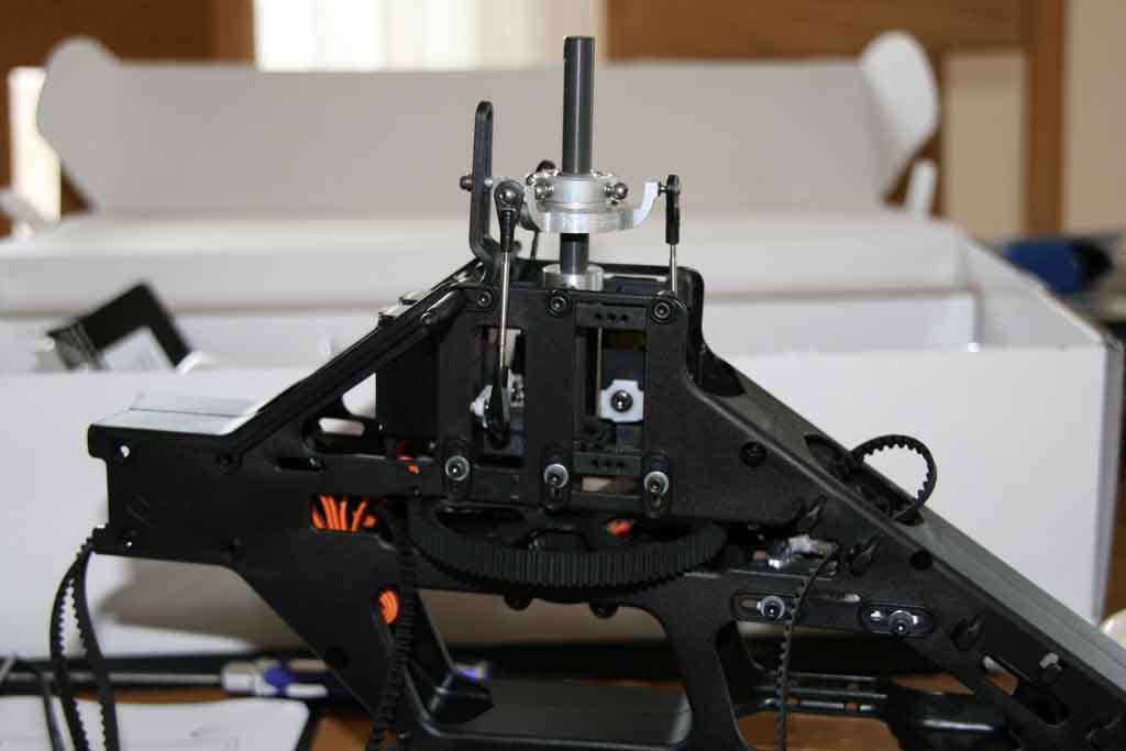 Flybar-carrieren som skal skrues i hubben var litt for smal, sånn at bindet opp lagrene, og gikk tregt. (bilde kommer). Jeg fant ut at dette måtte skyldes feilproduksjon på flybar-carrieren, og ny del må til for å få det godt nok.