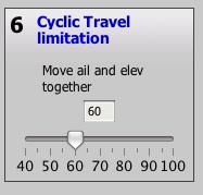 Derfor settes den opp med størst mulig mekaniske utslag, og så bestemmer du hvor fort det faktisk skal flippe og rolle i softwaren, på denne måten kan du gi full cyclic, og v-baren har fortsatt mer å gå på for å kompensere for vind og andre ting, på samme måte som en gyro kan gi mer pitch på halen for å kompensere for ytre påvirkninger.