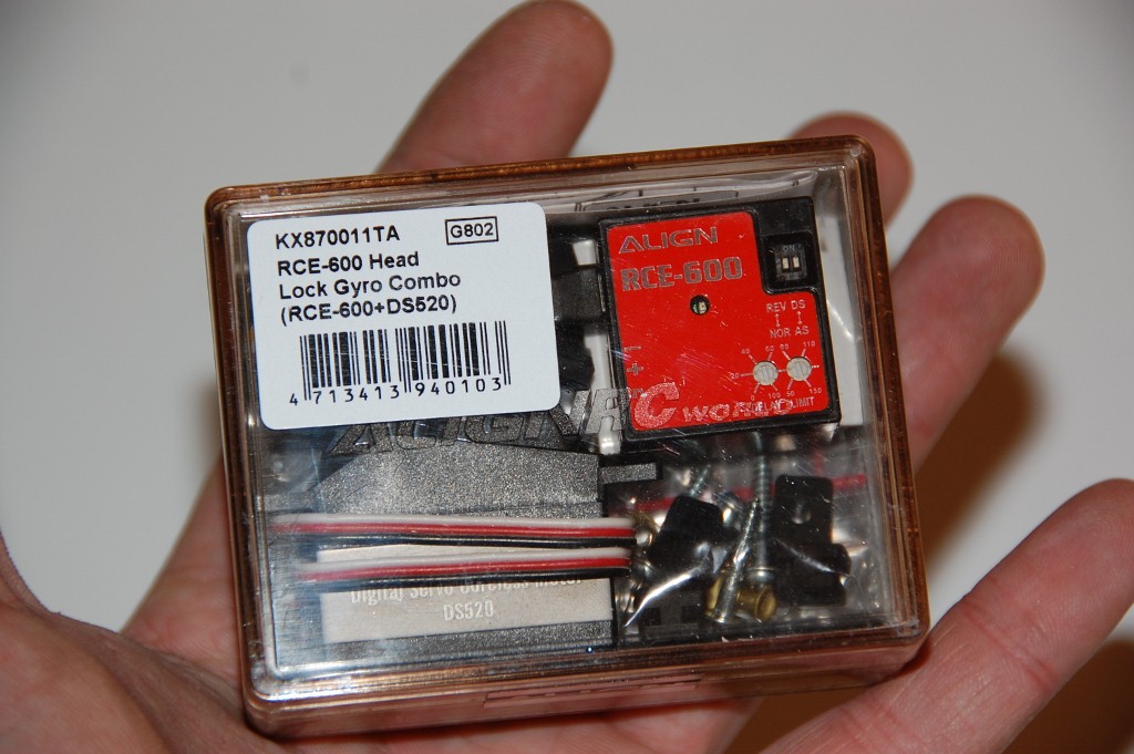 Gyroen blir mest sannsynlig en Align RCE-600 Headlock Gyro m/DS-520 digitalservo