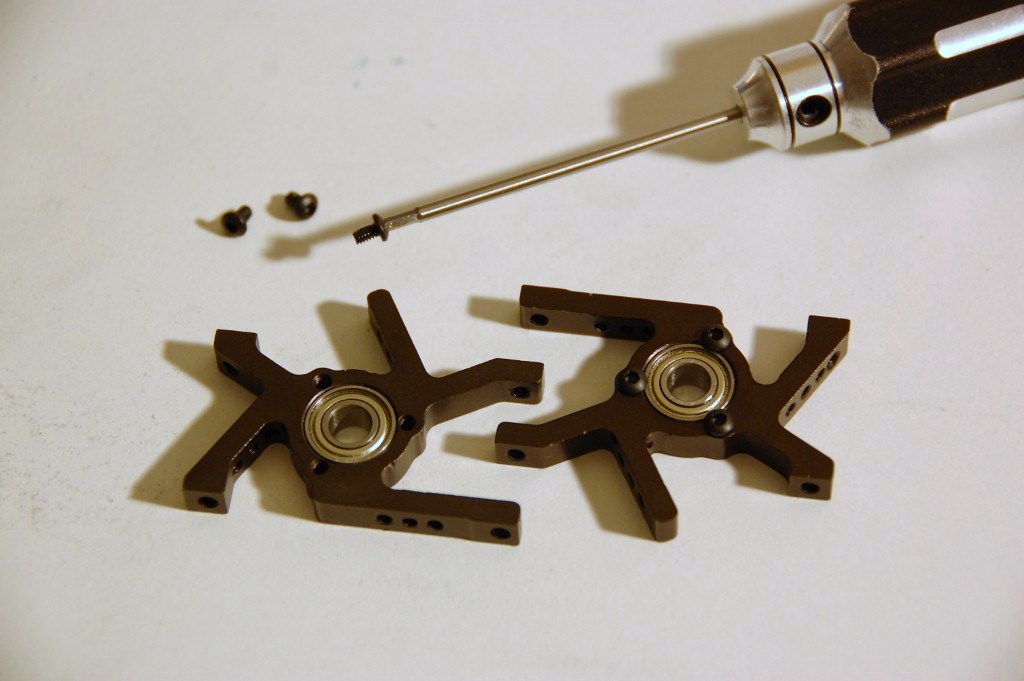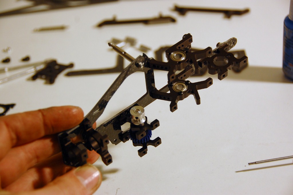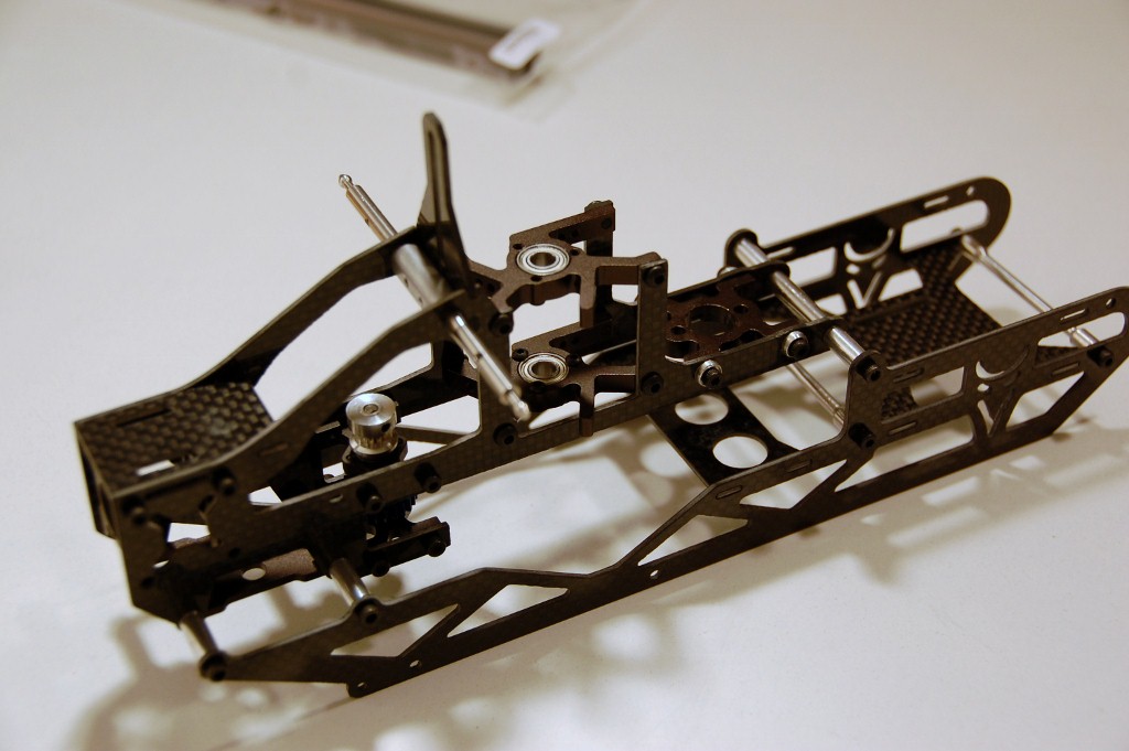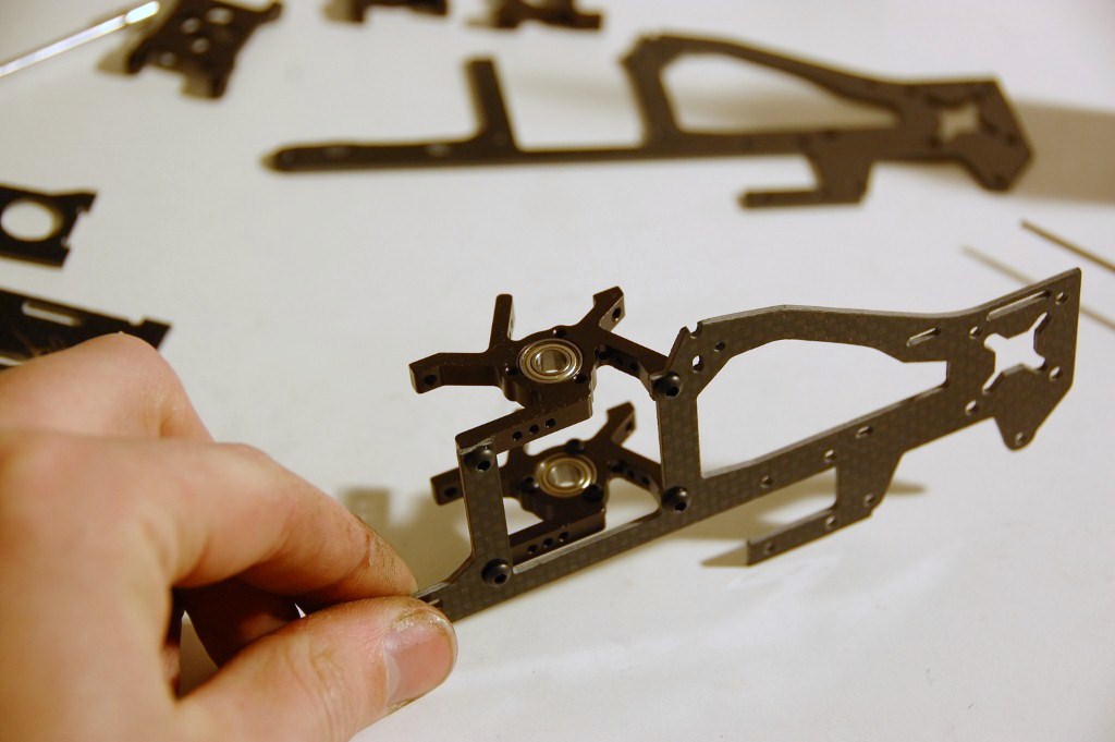 Start med å feste alle lagerblokkenetil den ene siden og sett så sammen med den andre rammesiden, ikke glem å legge mellom gyroplaten i carbon.